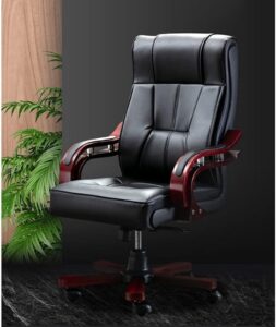 This Executive Office Chair with Wooden Arms is designed to provide a perfect blend of luxury, comfort, and professional appeal. Upholstered in premium black faux leather, the chair exudes sophistication and class, making it ideal for executive offices and boardrooms. The high backrest is generously padded with ergonomic support to ensure maximum comfort during long work hours.